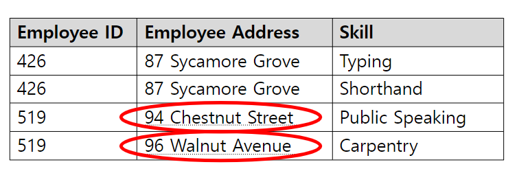- 갱신 이상 (Update anomaly)