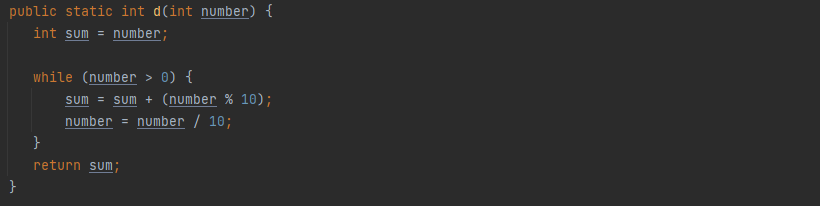 셀프넘버를 찾기위한 반복문 구성 Ex. d(75) = 75 + 7 + 5 = 87이 나오도록 구성해야한다.